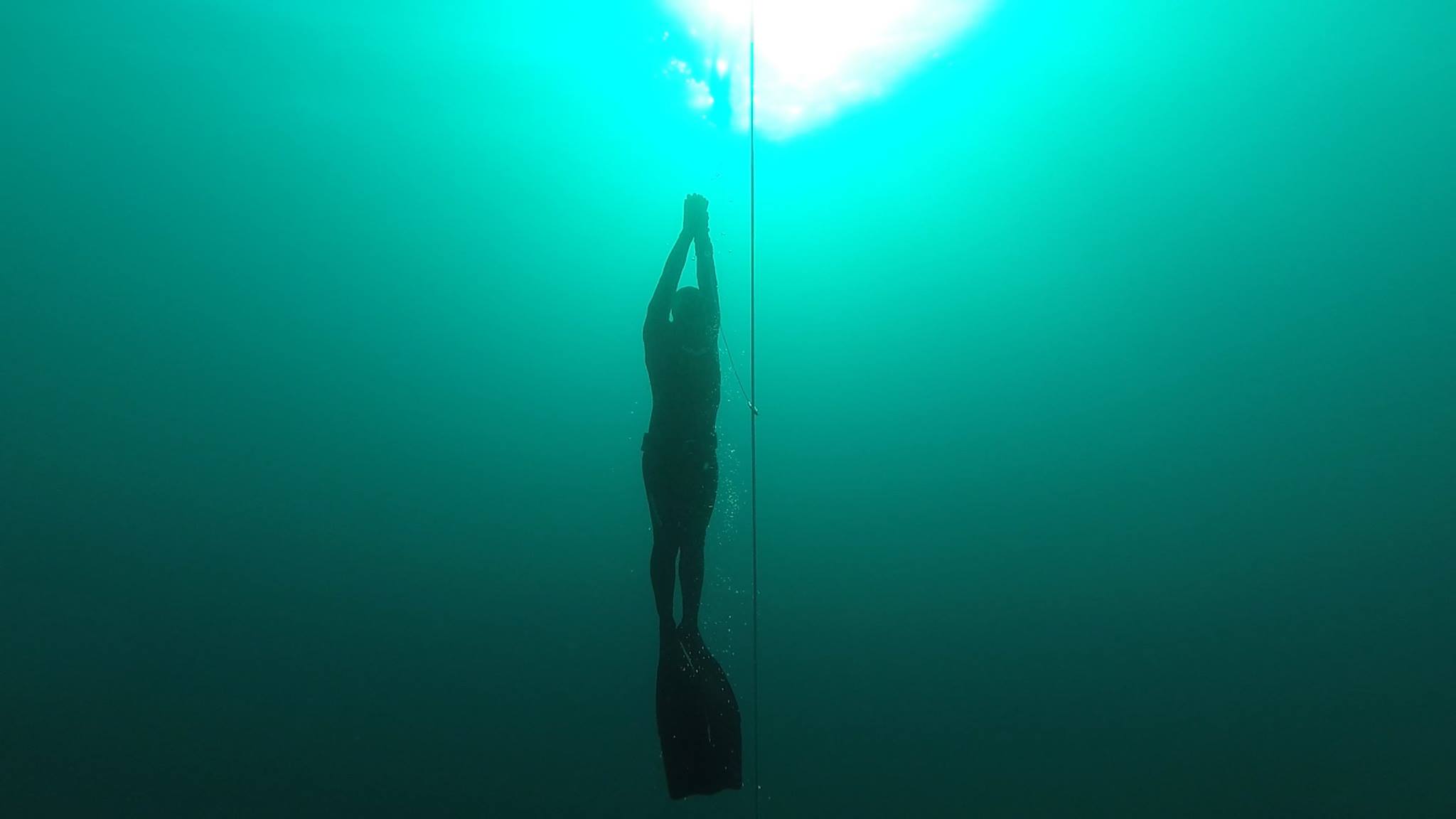 CAÍDA LIBRE – El momento en el cual el apneista llega a flotabilidad negativa y continua bajando sin necesidad de aletear o sin tener que realizar ningún esfuerzo, simplemente dejándose caer en la profundidad del azul.